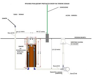 Przedstawiamy rysunek poglądowy umiejscowienia, podłączenia i wyposażenia studzienki wodomierzowej na terenie działki. Położenie studzienki będzie ustalane z działkowcami po wcześniejszym umówieniu. Studzienka zostanie wkopana w odległości do 1,5 metra od granicy działki od strony alejki. Wyprowadzona z niej zostanie rura, która wystawać będzie ponad teren gruntu na wysokość 0,6 metra, zakończona zaworem. Rozwiązanie to pozwala mieć wodę na terenie działki w sytuacji, gdy działkowiec zdecyduje się wykonać swoje przyłącze do altany w późniejszym czasie. Studzienka wyposażona zostanie w wodomierz i zawór pozwalający wydmuchać wodę po sezonie z sieci altany. Dokonamy zakupu kompresora wspólnego dla wszystkich zainteresowanych. Pragniemy przypomnieć, iż studzienka wraz z wyposażeniem i montażem zostanie sfinansowana z zebranych już środków finansowych. Pierwotnie nie znając jeszcze kosztu budowy miała zostać sfinansowana z własnych środków każdego działkowca, o czym mówiliśmy na walnych zebraniach. W związku z pytaniami o możliwość zlecenia wykonania swoich przyłączy wodnych i kanalizacyjnych w tym umówienia terminów i ceny, przez firmę która wykonywać nam będzie inwestycję – przesyłamy bezpośredni kontakt: 692-077-747. Zarząd ROD Camping