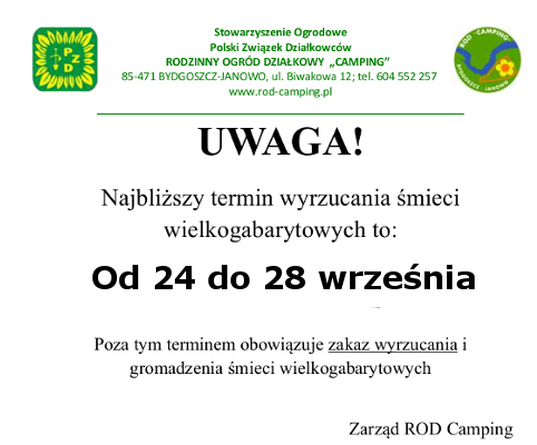 W dniu wczorajszym nastąpiło przekazanie placu budowy Generalnemu Wykonawcy. Od dnia dzisiejszego tj. od 16 września 2025r. obowiązuje zakaz wejścia i wjazdu na główną aleję, a także na alejki 1-go etapu budowy -Cisowa i Pod Dębami. Prosimy o bezwzględne stosowanie się do zasad bezpieczeństwa. Na terenie budowy polecenia wydaje Wykonawca i Kierownik budowy. Przypominamy- obowiązuje zakaz stawiania samochodów na terenie naszego parkingu. Parking jest miejscem składowania materiałów budowlanych, maszyn i urządzeń Wykonawcy. Zarząd ROD Camping